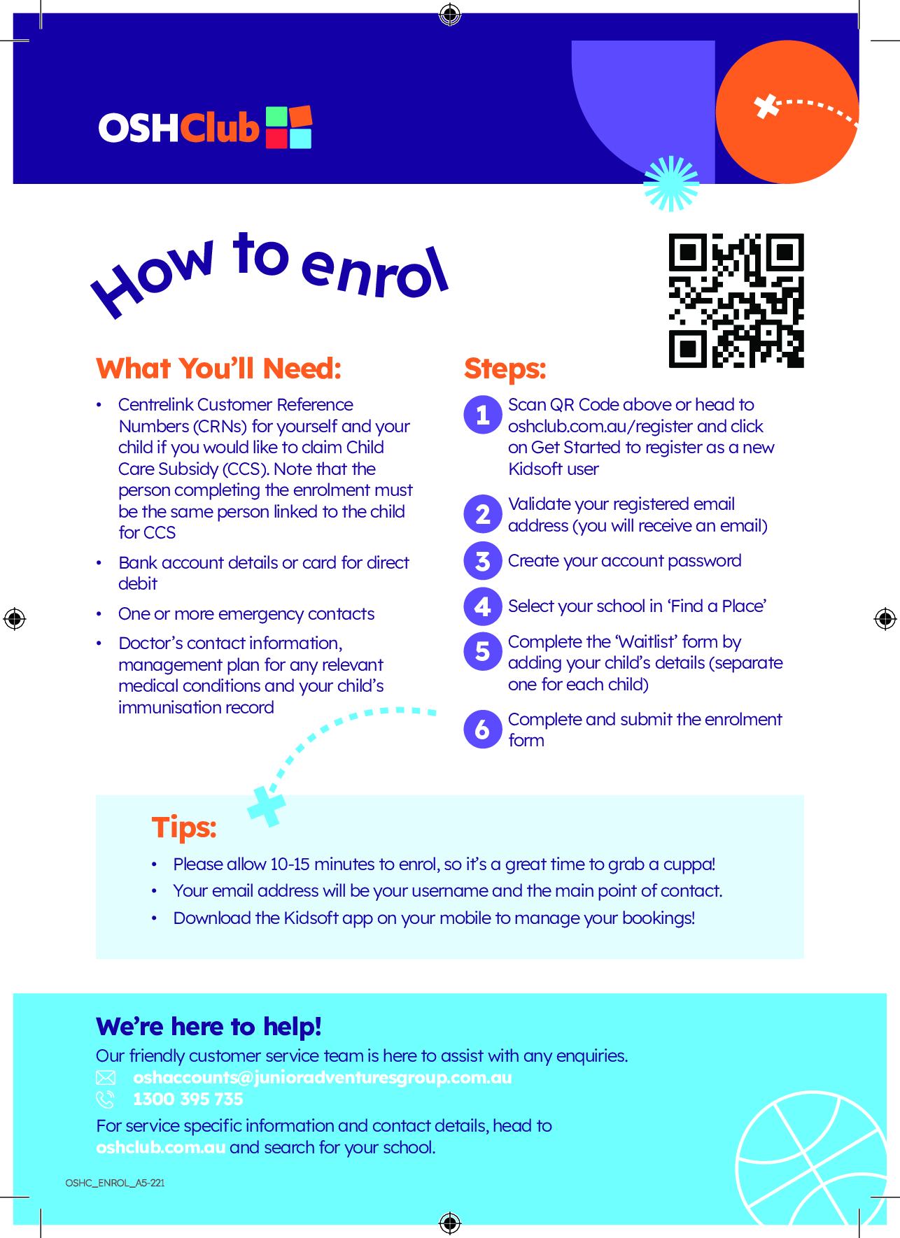The Ashburton Drive OSHClub service details are as follows: (please note that the service mobile and service email only become active on the first day of operation – Monday 2nd February 2026)
